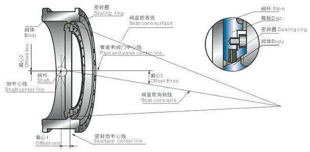 氣動三偏心蝶閥結(jié)構(gòu)原理: